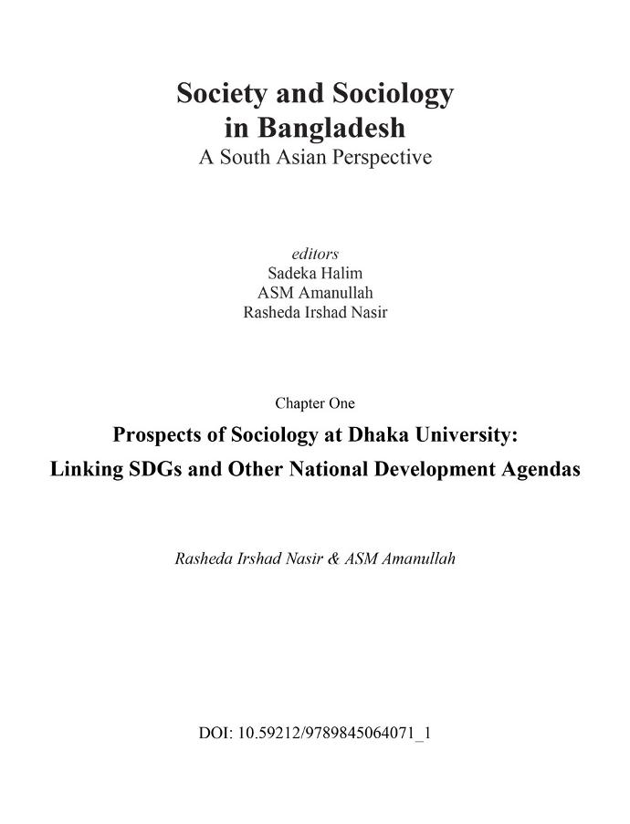 Nasir, Rasheda Irshad, Amanullah, ASM, AU. Prospects of Sociology at Dhaka University: Linking SDGs and Other National Development Agendas. Society and Sociology in Bangladesh: