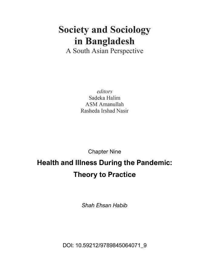 Habib, Shah Ehsan, AU. Health and Illness During the Pandemic: Theory to Practice. Society and Sociology in Bangladesh: